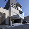 広島市内南区の幹線道路に近接する閑静な敷地に建つRC造3階建ての住宅です。