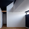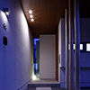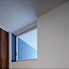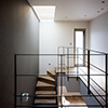 リビングルームから繋がる階段の上部にはトップライトを設け、木製ルーバーが光をコントロールしています。2階でお嬢様の奏でるピアノの音色と共に優しい光がリビングルームに降り注ぎます。