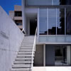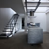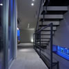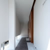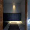 墨入りモルタルの床が玄関ホールから寝室へと続き、静寂な神秘的な空間が広がります。