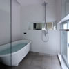 そこには、ガラス張りのサニタリーとホールからリビングへと導かれます。