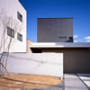 閉鎖的にしつらえたコンクリート打放しのファサードウォール越しにアプローチへと進みます。
