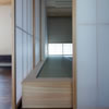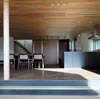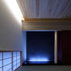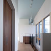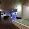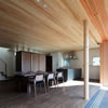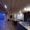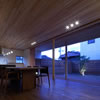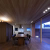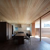 室内のヒノキの天井が深い軒に繋がります。 この深い軒が木製建具の劣化を防ぎ、夏の不愉快な直射日光の調整を担います。