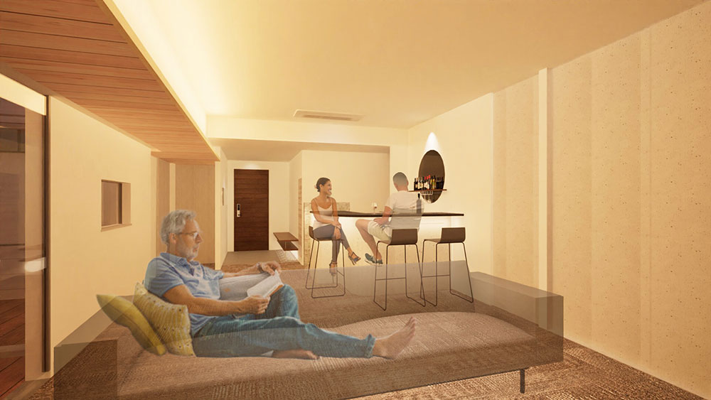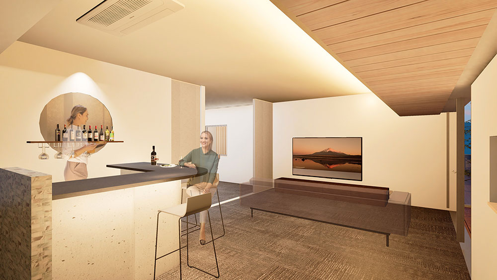 客室面積93㎡、サウナ付きの各室に17㎡の屋外テラスを設け各階1室の構成でゆったりくつろいで頂けるホテルを目指します。